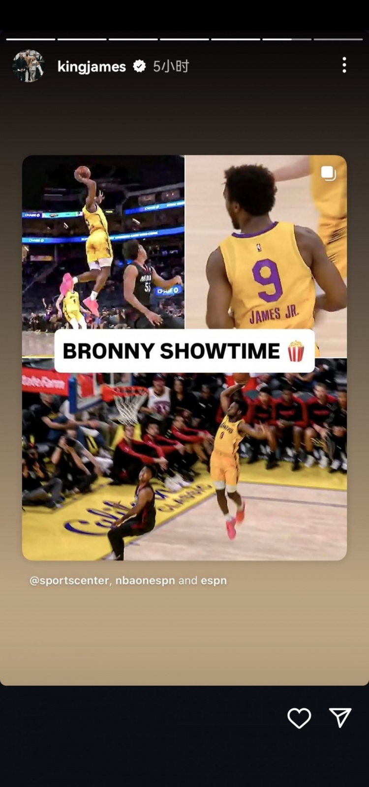 7月7日讯 NBA夏季联赛,湖人以103-83击败热火。此役,布朗尼-詹姆斯出战10分32秒,投篮7中3,三分5中2,罚球2中2,得到10分2篮板1抢断。赛后,詹姆斯更新社媒,连发三条与布朗尼相关的动态。