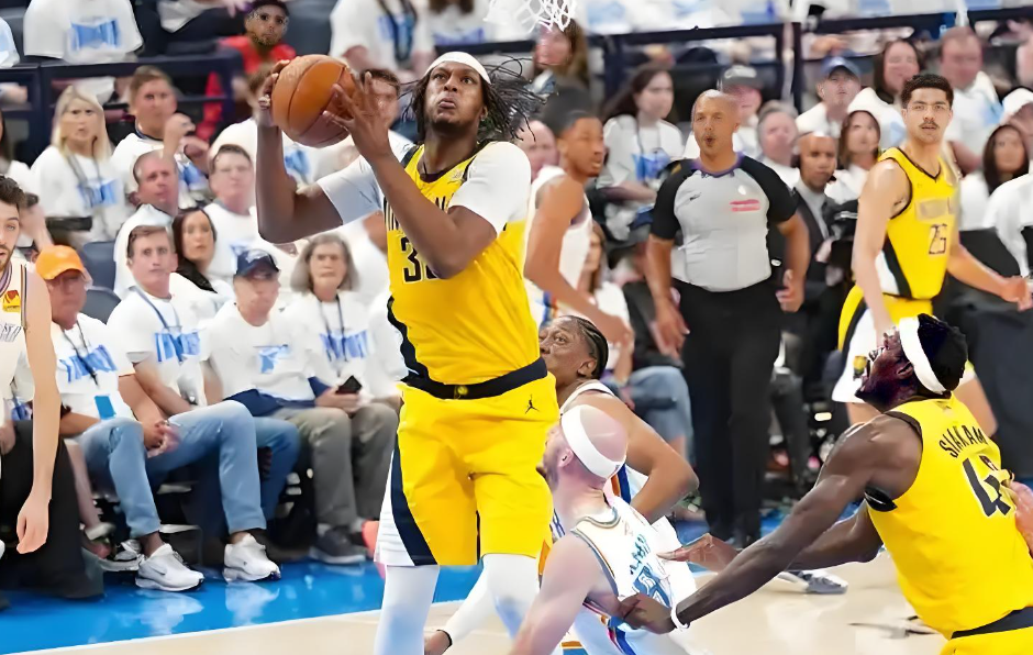回看比赛前三节,步行者展现出了他们一整个季后赛一直给球迷看到的比赛内容,稳定的防守以及多点开花的进攻。哈利伯顿全场18分7助攻2篮板串联球队进攻,下半场第三节也是持续稳定发挥。西亚卡姆同样贡献20分8篮板5助攻5抢断,依旧是球队的稳定得分点。